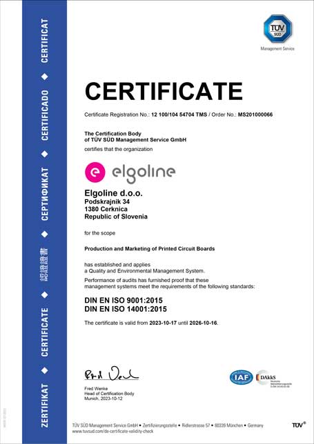 In the production of printed circuit boards, we adhere to environmental regulations in accordance with the laws of the Republic of Slovenia. When selecting technologies, we consider their environmental impacts and make decisions in line with the European REACH and RoHS directives, opting for the most economical and environmentally friendly technologies.